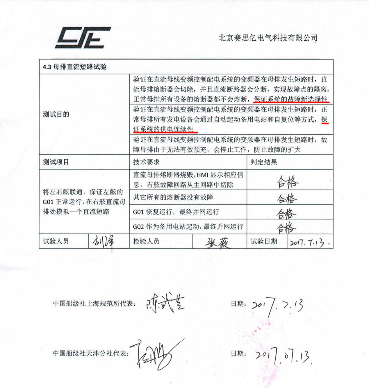 CCS認可的直流組網(wǎng)系統(tǒng)短路試驗報告