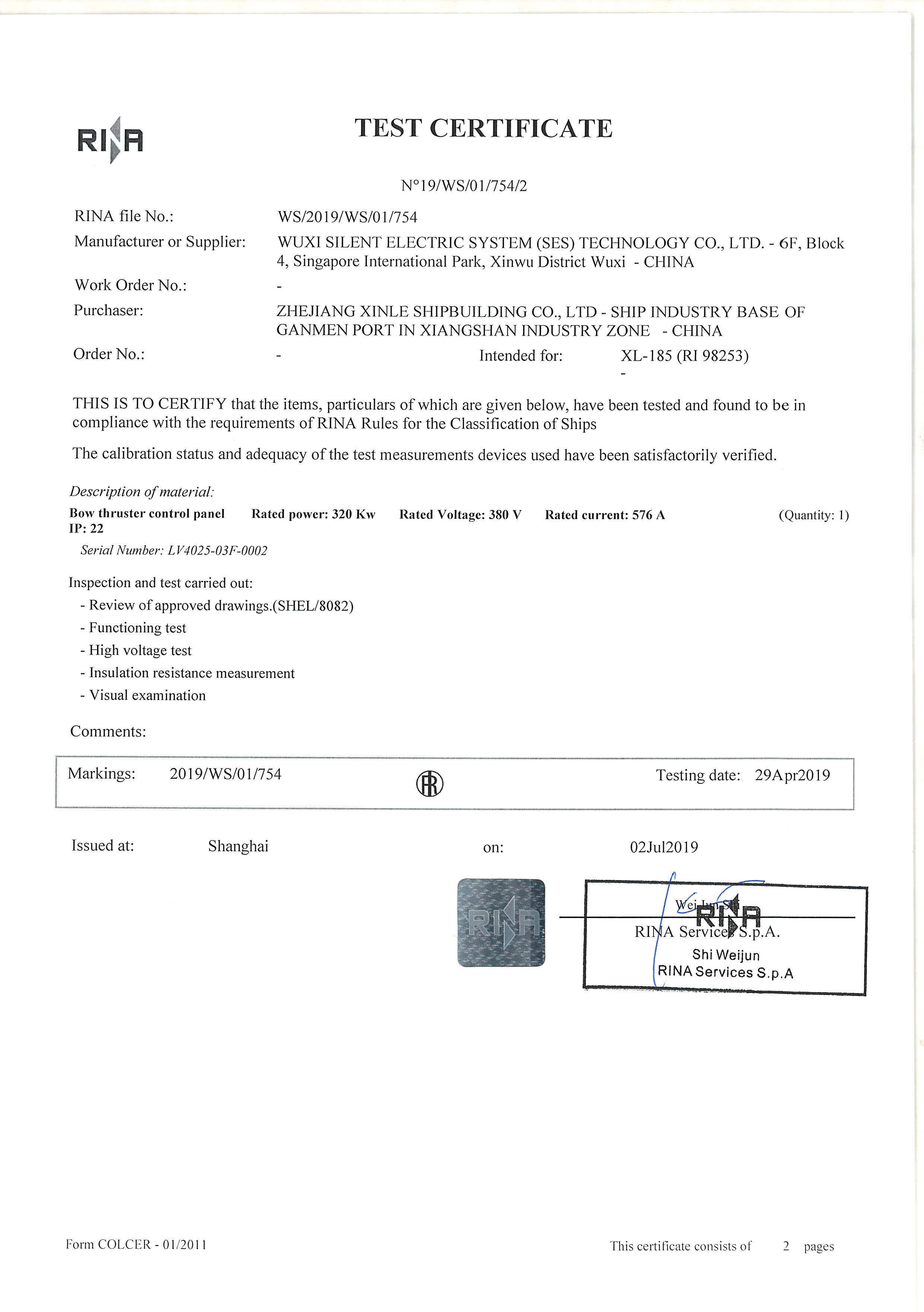 2020年04月10日上午,由浙江新樂造船股份有限公司為瑞士Nova Marine Carriers公司建造,裝備了賽思億艏側(cè)推國產(chǎn)推進(jìn)變頻電控設(shè)備和艏側(cè)推電機(jī)的6000噸雜貨船1號(hào)船“野?!陛嗠x開公司碼頭前往寧波北侖大榭交船,該船舶的側(cè)推進(jìn)系統(tǒng)由無錫瑞風(fēng)船用推進(jìn)器有限公司集成。