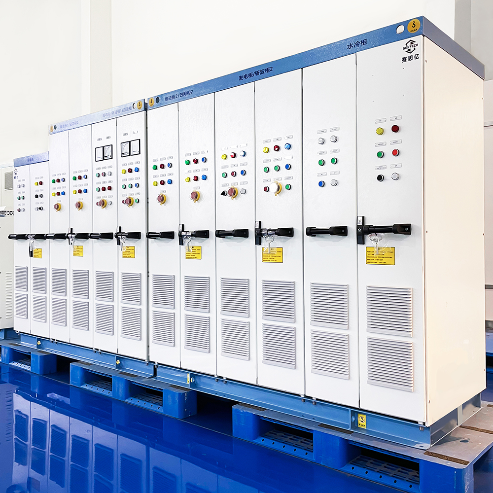 該游艇船長(zhǎng)20.77米,船寬6.10米,吃水1.21米,整個(gè)系統(tǒng)配置1臺(tái)120kW的應(yīng)急發(fā)電機(jī)組,2組245kWh的鋰電池組,經(jīng)過(guò)賽思億集中式的自主知識(shí)產(chǎn)權(quán)直流母線變頻電控設(shè)備進(jìn)行并網(wǎng),驅(qū)動(dòng)2臺(tái)120kW的主推電機(jī)。