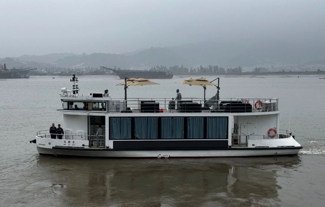“閩都號”20.8m純電動游船,是福建福州兩江四岸客運有限公司投資新造的第二艘現(xiàn)代純電動游船,用于“閩江之心”航線“煙臺山碼頭—蒼霞碼頭”對渡游中。“閩都號”游船總長20.79米,型寬5.1米,采用賽思億純電力推進系統(tǒng),該船由長江船舶設(shè)計院有限公司設(shè)計,福建東南造船廠有限公司福寧重工基地建造,船舶可容納乘客76人,采用低污染、低排放、低噪音的純電動力。