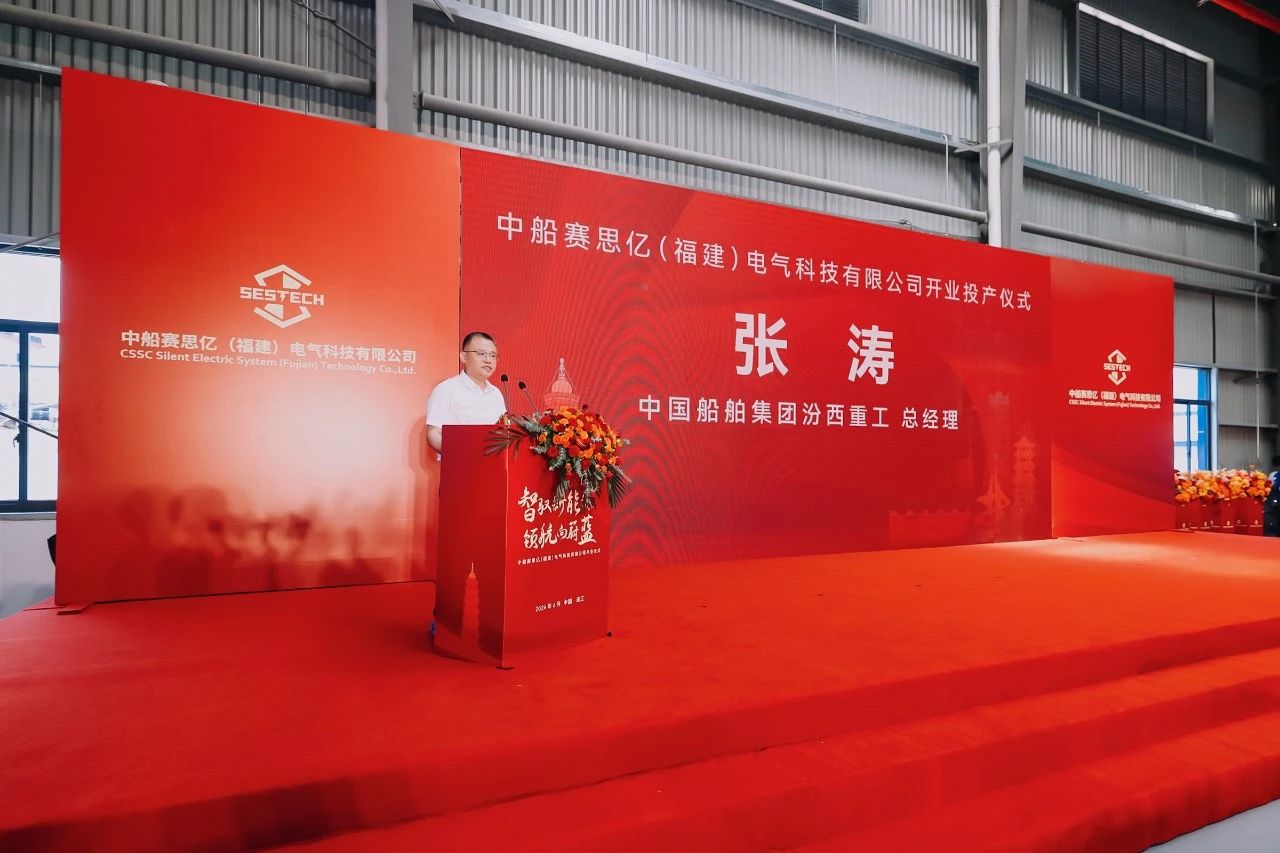 2024年6月30日,中船賽思億(福建)電氣科技有限公司在福建省連江經(jīng)濟開發(fā)區(qū)山崗工業(yè)園區(qū)內(nèi)順利舉行開業(yè)投產(chǎn)儀式,福建省工業(yè)和信息化廳黨組成員、總工程師施惠財、福建省工業(yè)和信息化廳二級調(diào)研員鄭源、福州市工信局黨組成員、一級調(diào)研員程紅梅,福州水路事業(yè)發(fā)展中心副主任翁國強,福州市招商辦招商四組負責人侯偉彬,連江縣人民政府副縣長張記歡,連江經(jīng)濟開發(fā)區(qū)主任林承文等領(lǐng)導(dǎo)干部,中國船舶集團戰(zhàn)略規(guī)劃部投資處處長顧彩銀、中國船舶集團汾西重工有限責任公司總經(jīng)理張濤、福建省船舶工業(yè)集團副總經(jīng)理李振均、中國船級社福州分社副總經(jīng)理鄭金東、建造處處長王堅等相關(guān)領(lǐng)導(dǎo),船舶行業(yè)船東、船廠、設(shè)計院、行業(yè)協(xié)會等各級同仁、企業(yè)家代表等出席開業(yè)投產(chǎn)儀式。