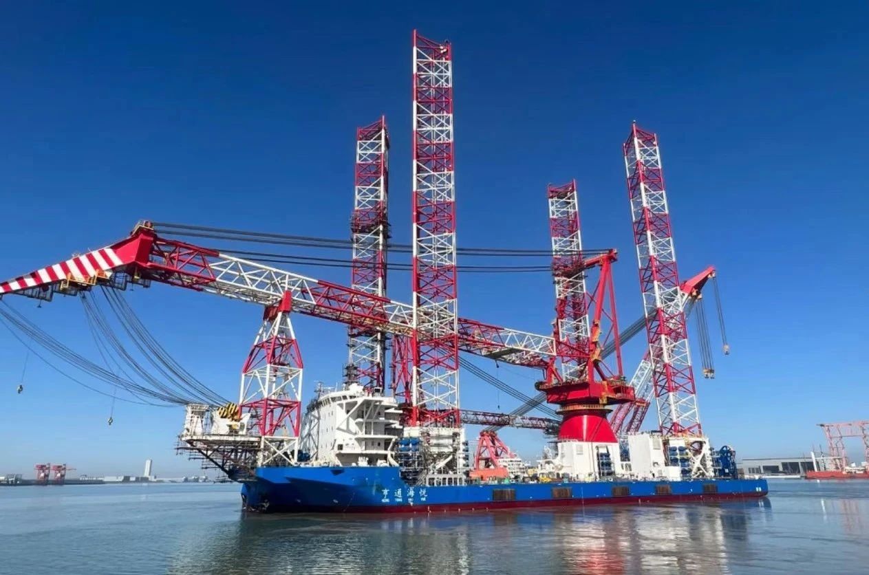 由亨通集團(tuán)投資、上海佳豪設(shè)計(jì)、江蘇大津重工建造,搭載中船賽思億全套電力推進(jìn)系統(tǒng)總成的1600T大型深遠(yuǎn)海風(fēng)電安裝平臺(tái)“亨通海悅”近日在大唐海南儋州120萬(wàn)千瓦海上風(fēng)電項(xiàng)目投入使用并成功安裝了12臺(tái)海上風(fēng)機(jī),順利完成首秀。