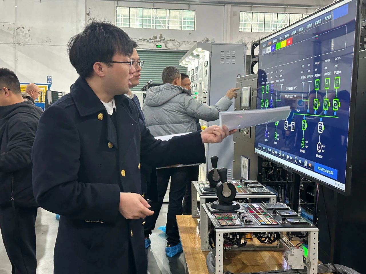 作為我國(guó)首艘海上大型純電動(dòng)旅游客船,該項(xiàng)目承載著船舶行業(yè)的創(chuàng)新使命,備受各方矚目。中船賽思億作為該船三電系統(tǒng)集成商和制造商,開(kāi)創(chuàng)性地開(kāi)展了全國(guó)首個(gè)海船項(xiàng)目的三電系統(tǒng)陸上聯(lián)調(diào)聯(lián)試試驗(yàn),通過(guò)模擬船舶全工況運(yùn)行環(huán)境,對(duì)動(dòng)力系統(tǒng)、能量管理系統(tǒng)、推進(jìn)系統(tǒng)等關(guān)鍵環(huán)節(jié)進(jìn)行系統(tǒng)性驗(yàn)證。在廈門(mén)海事局、船東、船廠與中國(guó)船級(jí)社多方專(zhuān)業(yè)團(tuán)隊(duì)的全程監(jiān)督與見(jiàn)證下,各項(xiàng)聯(lián)調(diào)聯(lián)試試驗(yàn)數(shù)據(jù)均精準(zhǔn)契合船舶設(shè)計(jì)標(biāo)準(zhǔn),為項(xiàng)目的順利推進(jìn)奠定堅(jiān)實(shí)基礎(chǔ)。同時(shí),在關(guān)鍵的海上試航階段,中船賽思億組建專(zhuān)業(yè)調(diào)試團(tuán)隊(duì),全程駐船提供技術(shù)保障。團(tuán)隊(duì)?wèi){借精湛的專(zhuān)業(yè)能力和豐富的實(shí)踐經(jīng)驗(yàn),成功攻克海上復(fù)雜工況帶來(lái)的技術(shù)挑戰(zhàn),圓滿(mǎn)完成動(dòng)力性能測(cè)試、續(xù)航能力驗(yàn)證、安全系統(tǒng)檢測(cè)等一系列嚴(yán)格試驗(yàn),為“嶼見(jiàn)77”的成功交付奠定了堅(jiān)實(shí)而有力的基礎(chǔ)。