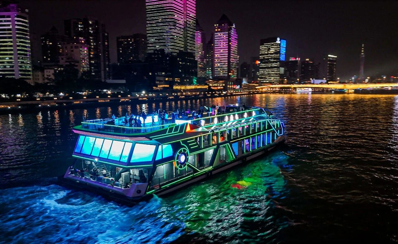 以“全運號”冠名的“星艦領(lǐng)航”船舶搭載中船賽思億S-Renewable純電池動力系統(tǒng),由中國船舶集團第六〇五研究院設(shè)計,英輝南方造船(廣州番禺)有限公司負責建造。“星艦領(lǐng)航·全運號”是集零排放、低噪音與高科技于一身,創(chuàng)新應用3D全息投影技術(shù),可變換多元視覺造型,將為賽事服務(wù)與珠江夜游提供沉浸式的未來科技體驗,它的正式投運是響應廣州“船上、水上、岸上、樓上、天上”五維發(fā)展戰(zhàn)略,推動珠江游綠色化、智能化升級的關(guān)鍵一步。