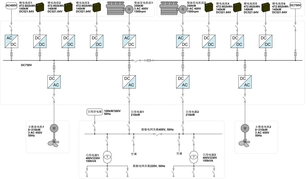 廣州之星300客位游輪,船長43.5m,型寬13.5m,型深3.2m,船舶設(shè)計航速10kn。船舶采用零排放、無噪音的磷酸鐵鋰電池動力系統(tǒng)作為主電源,配置電池總?cè)萘?835kWh,總推進(jìn)功率達(dá)到420kW,并采用高效靜音的永磁低速電機直接驅(qū)動螺旋槳,將于2021年正式交付。