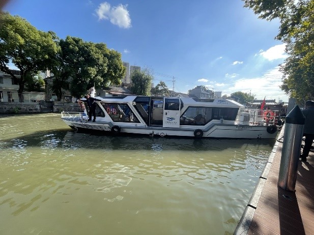 無錫古運(yùn)河28客位 “樂游1號、樂游2號” 游船,由江蘇江南古運(yùn)河旅游股份有限公司出資、常州晨光游艇制造有限公司建造,采用賽思億S-Renewable新能源動力系統(tǒng),該船船長14.80m,型寬3.60m,系統(tǒng)配置共接入2組鋰電池組,整船鋰電池容量共計(jì)215kWh,驅(qū)動2臺11kW的主推電機(jī)。目前已順利交付船東使用。