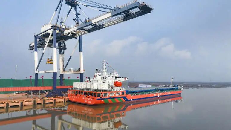 船上搭載的8套集裝箱式電源支持高效充換電,結合全球領先的岸基充換電網(wǎng)絡,將助力濱州港、套爾河港區(qū)打造“綠色生態(tài)走廊”。該船投入運營后,將帶來顯著的環(huán)保效應。按照每月10個航次計算,該船全年預計可減碳9000噸、減油2800噸。