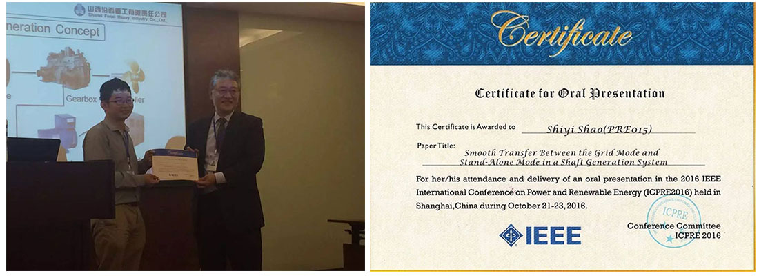 精彩的主題演講及大會報告之后,會議邀請優(yōu)秀論文的作者北京賽思億副總經(jīng)理邵詩逸在專題會議報告廳做了題為《Smooth Transfer Between the Grid Mode and Stand-Alone Mode in a Shaft Generation System》(軸帶發(fā)電系統(tǒng)中并網(wǎng)模式和獨網(wǎng)模式之間的平滑切換)的報告。該課題為軸帶發(fā)電系統(tǒng)應(yīng)用中的關(guān)鍵難題,而這一難題的解決可以為用戶提供功能更強(qiáng)大、使用體驗更好的軸帶發(fā)電系統(tǒng)。